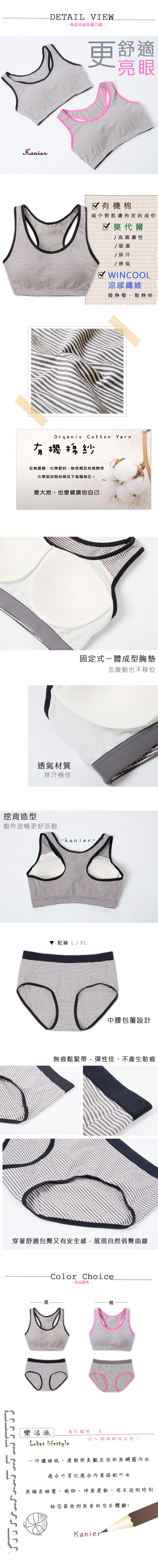 款式:條紋、無鋼圈、背心式、挖背、固定胸墊含胸墊袋設計、涼感材質