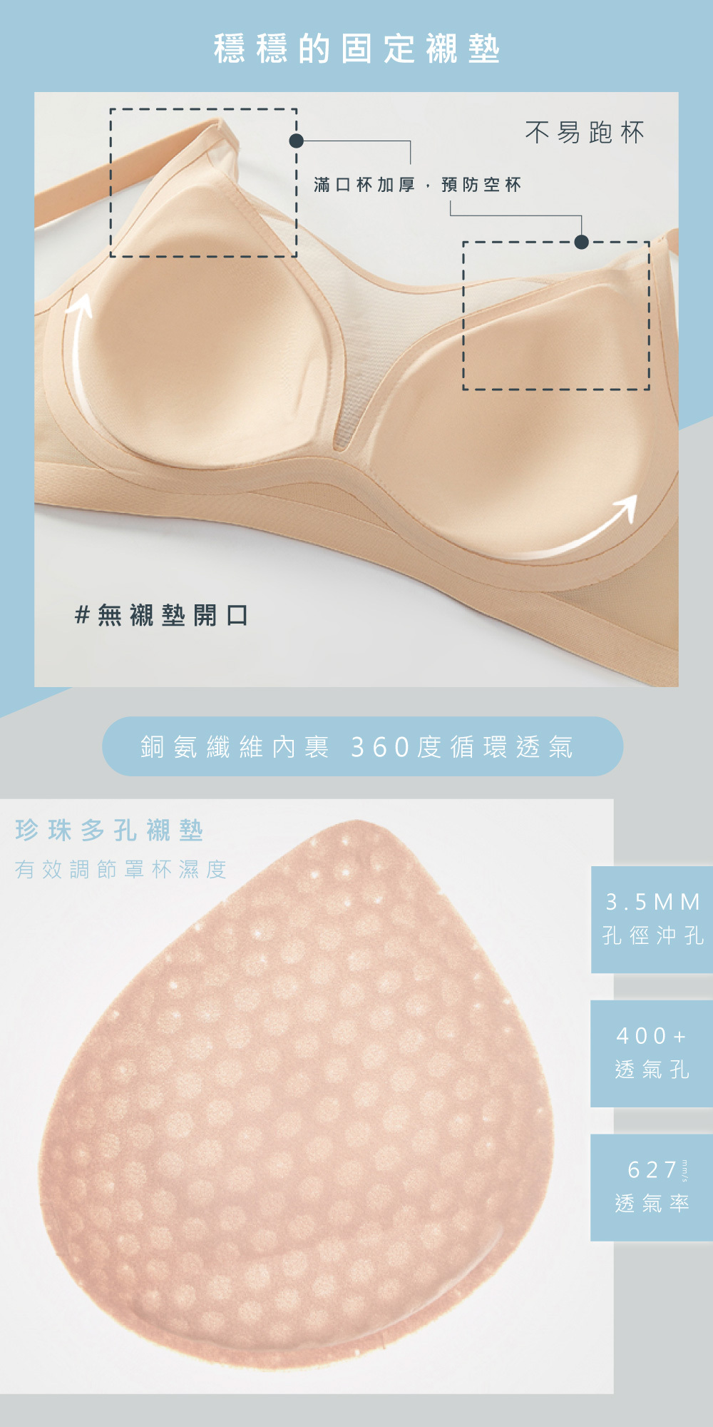 ●滿口杯加厚襯墊,提升上胸飽滿度,避免空杯問題