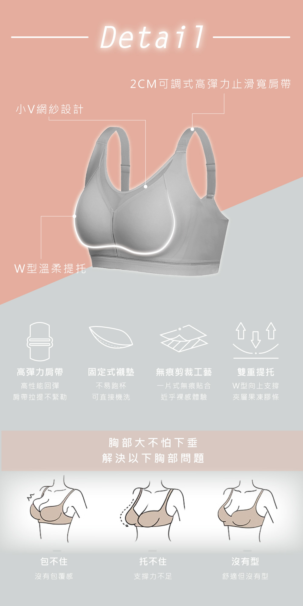 ●側邊加高,穩定包覆肉肉,杜絕副乳產生