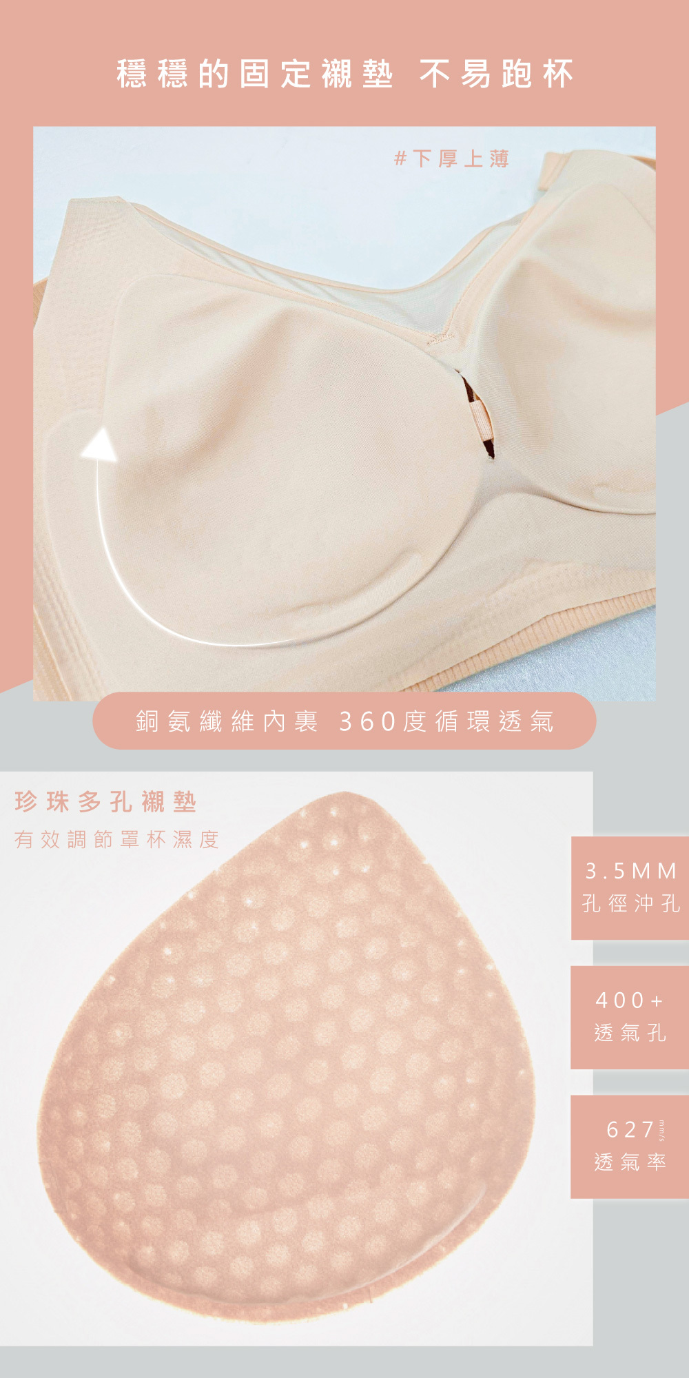 ●一體式襯墊(下厚上薄,厚度約2cm)涼感服貼