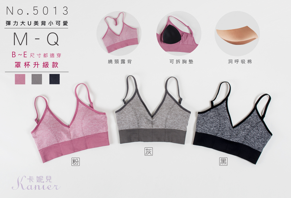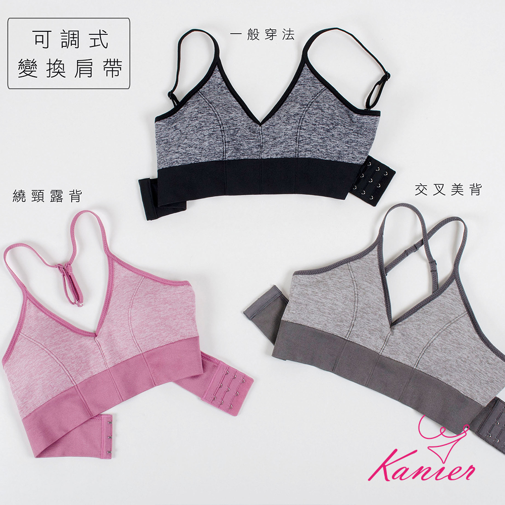 款式:無縫彈力素材、可當小可愛、運動可穿、可調細肩帶、可變換繞頸穿法、可拆洞洞棉胸墊、大U美背、3排3鉤