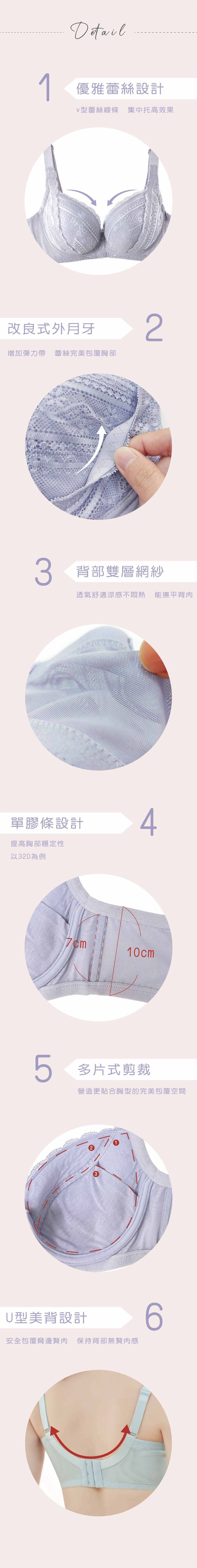 .多片式立體剪裁,拉提收攏、貼合胸型