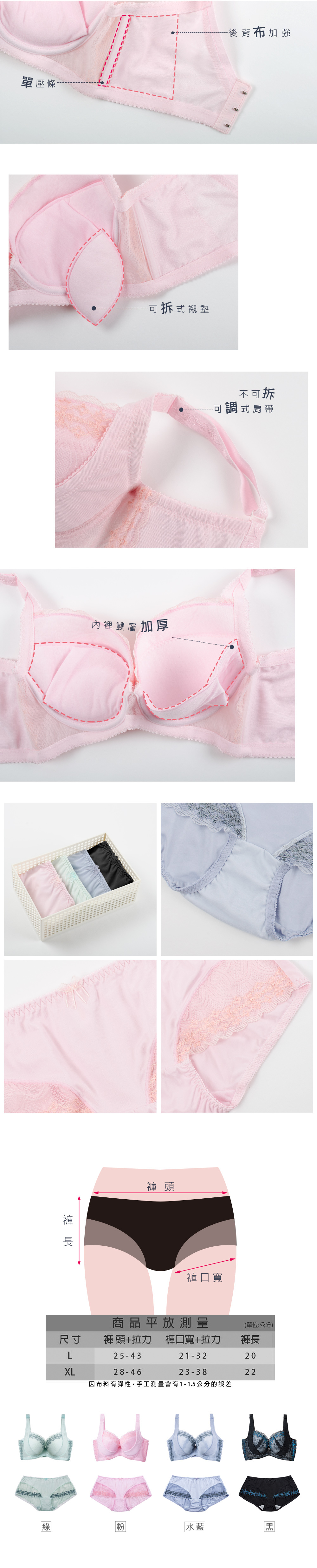 款式:3/4杯型、有鋼圈、肩帶可調不可拆、3鉤3排背扣