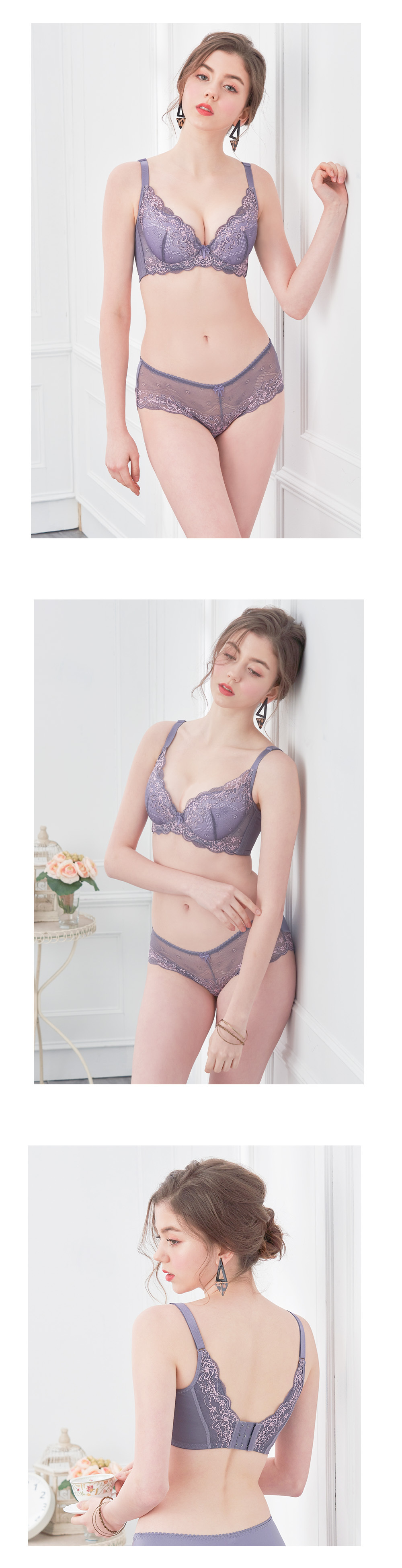 .花型蕾絲美背設計,完整包覆固定背肉讓身型更加完美