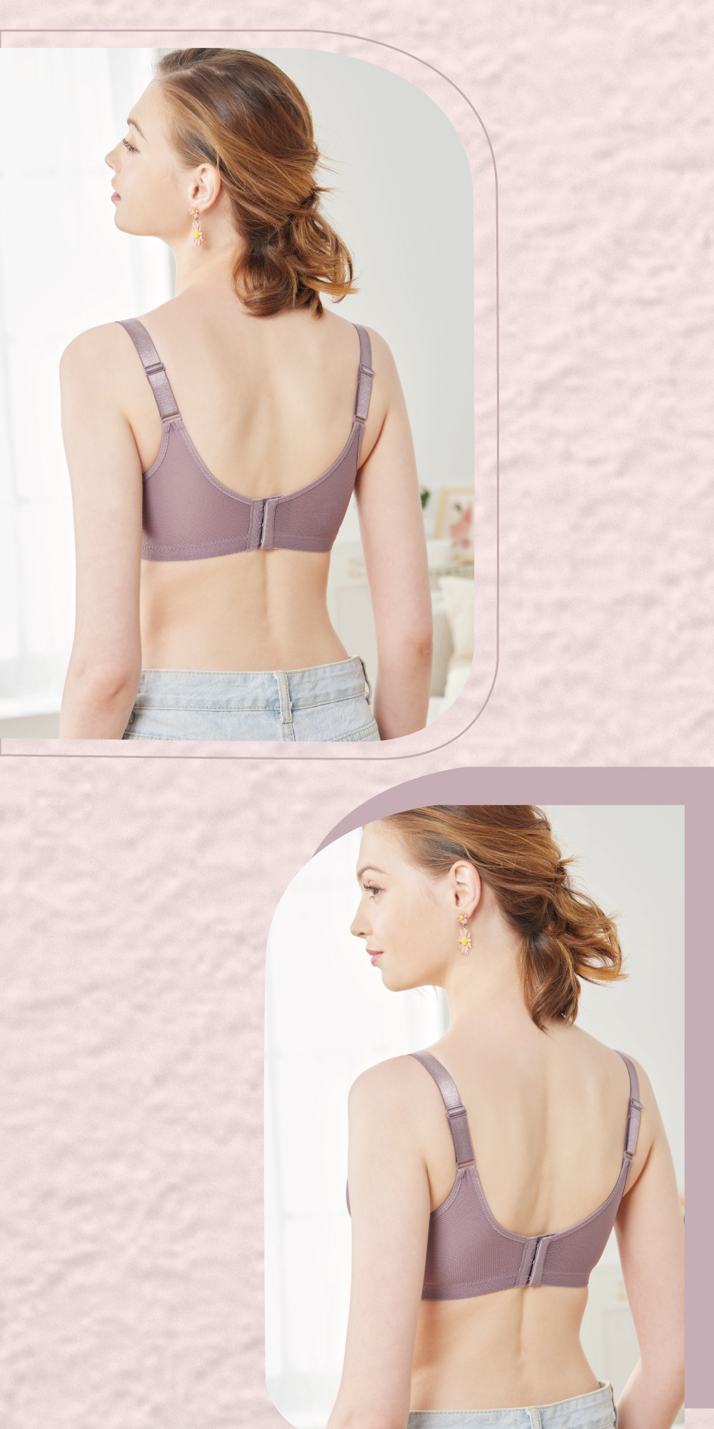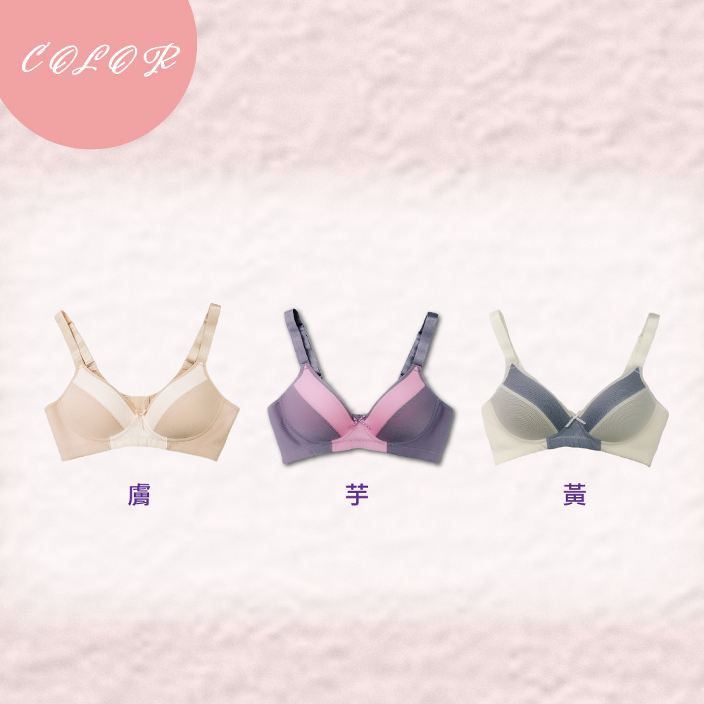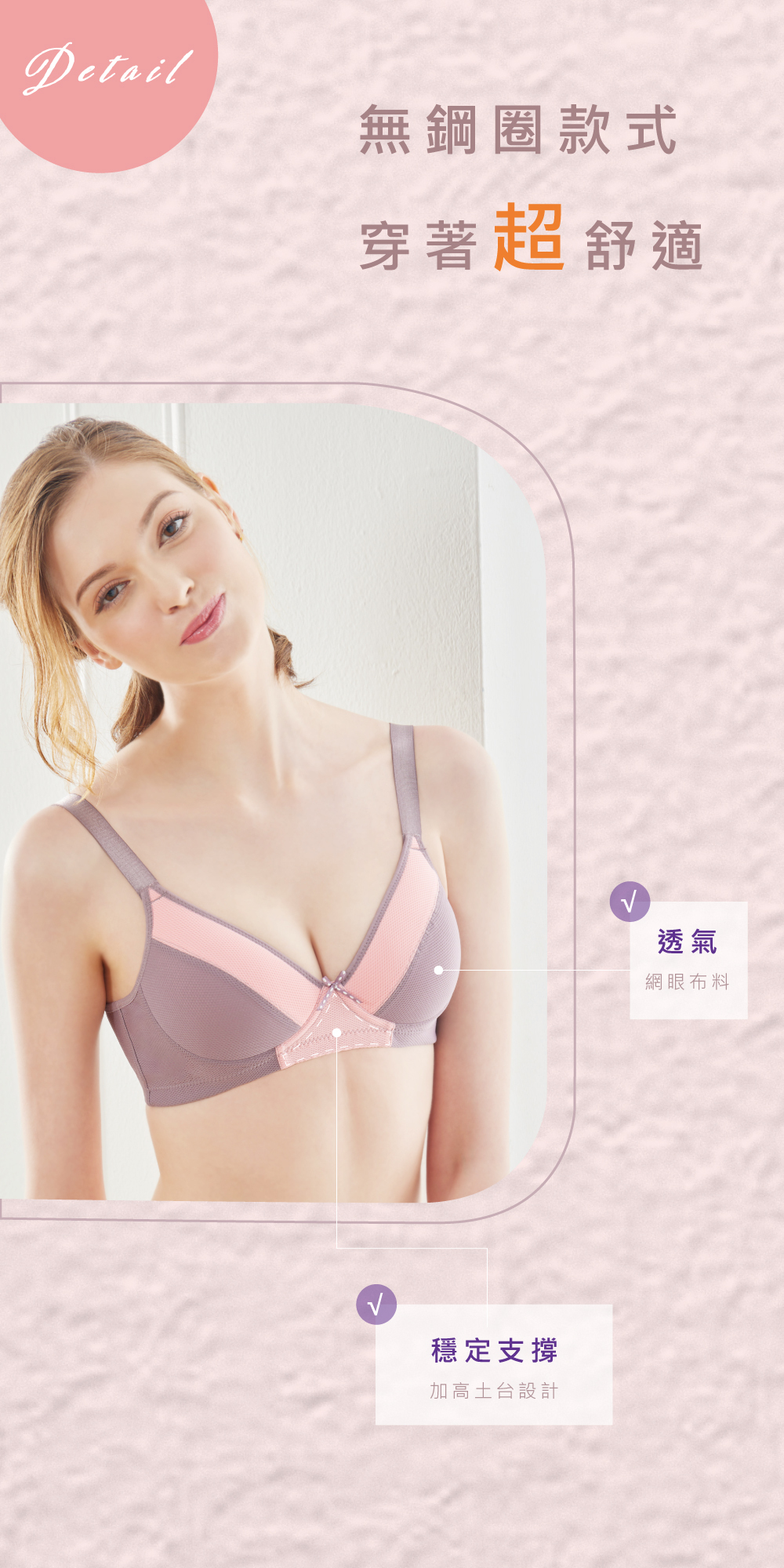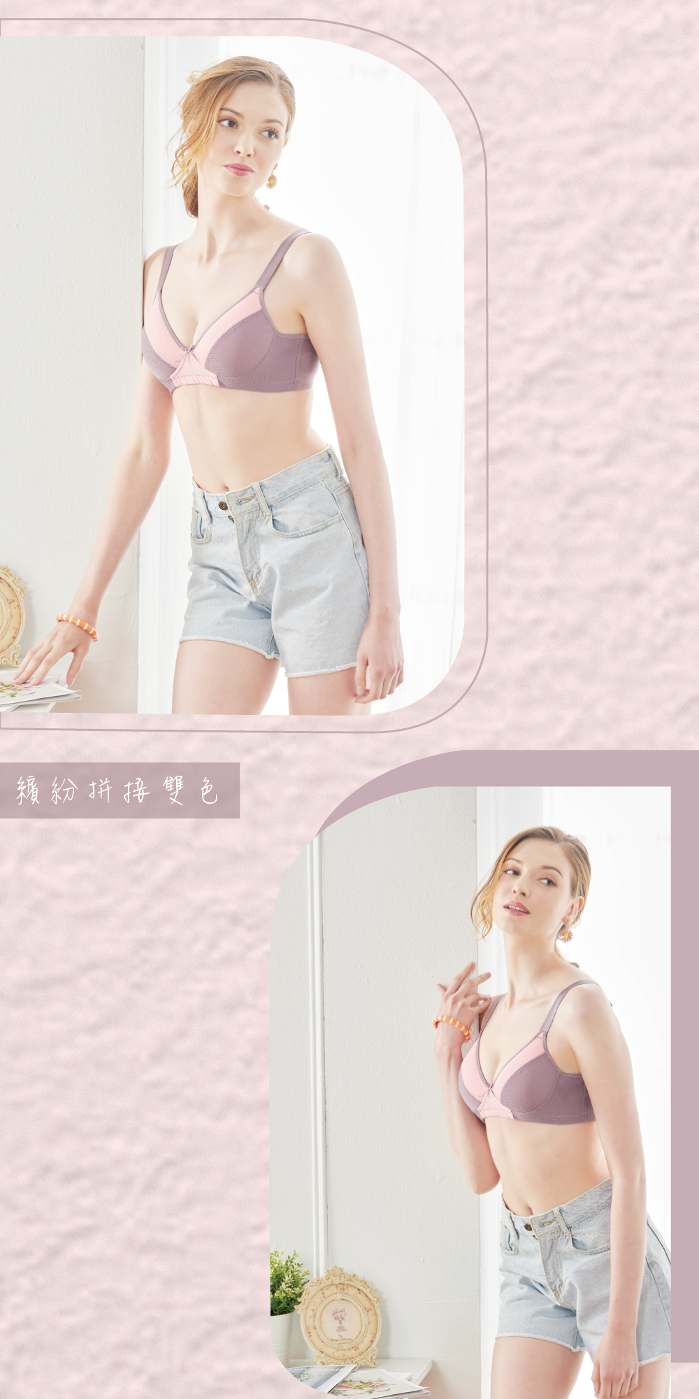 【Kanier卡妮兒】雙色拼接深度呼吸無鋼圈內衣【5008 芋頭粉 -B/C罩杯】